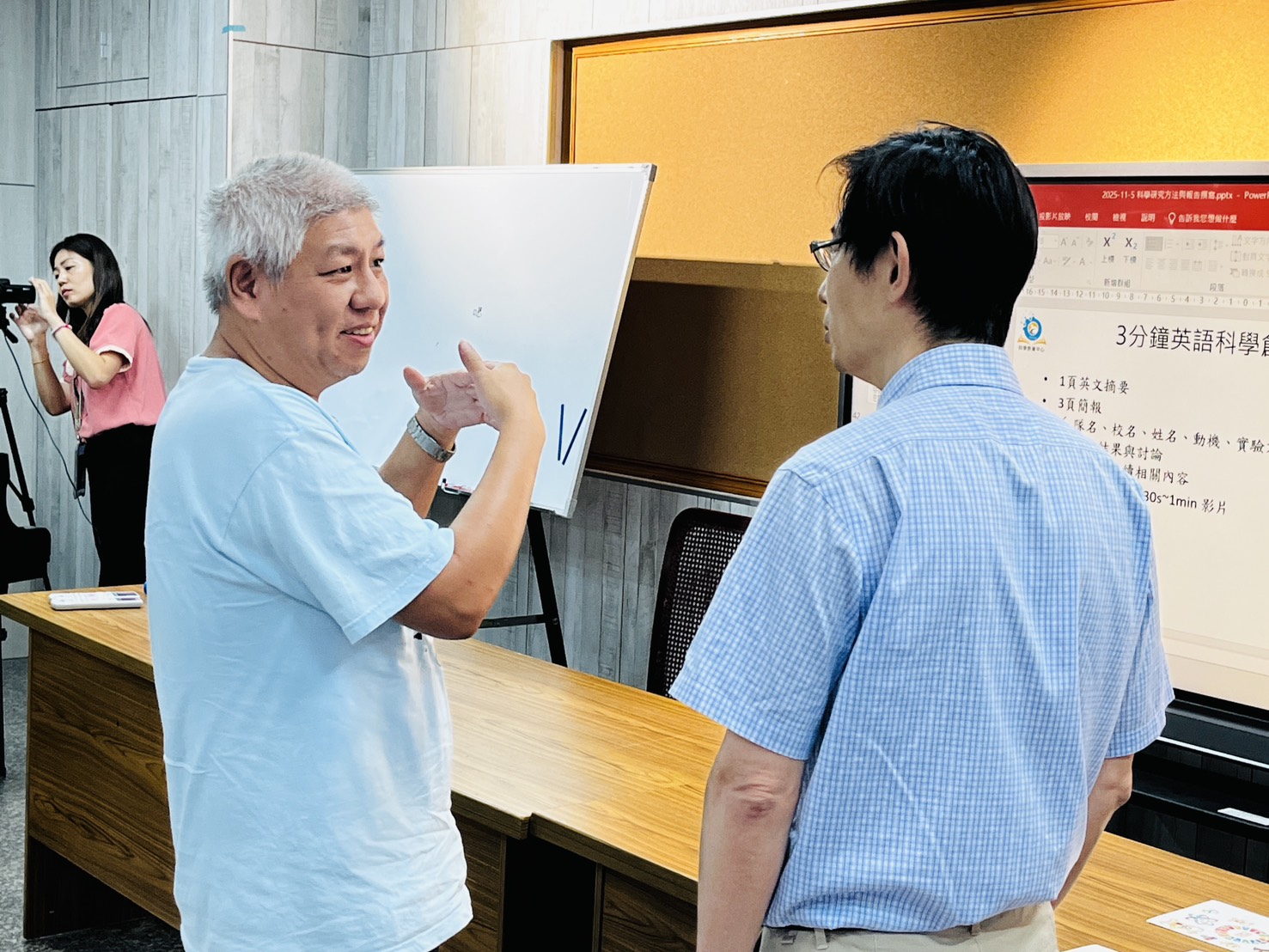 PS:還有一些過程中馬上發生的小案例,果然深刻活在科學裡的人,每一個生活的瞬間都是細緻的觀察!!! 海星的葉主任也在講座後分享著帶領學生的甘苦談,實踐的用心,其實都呼應著教授說的: “要跟老師打好關係,因為老師都是你學習過程中最好的後盾~~~~” 感謝學校的安排與用心,海星的學生們,三分鐘競賽見~~~~