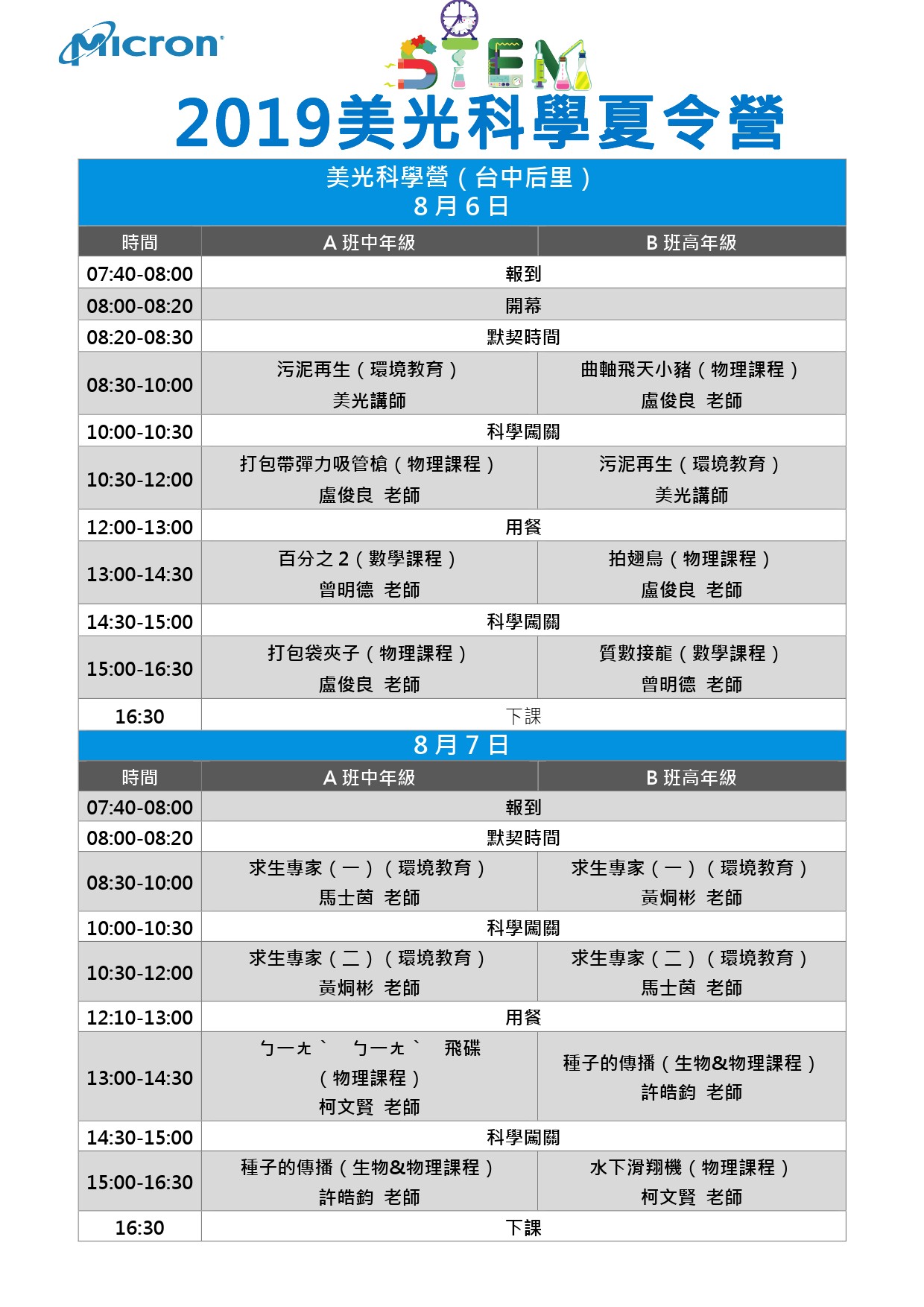 (遠哲官網-->活動專區-->2019年美光科學營 (台中后里場))