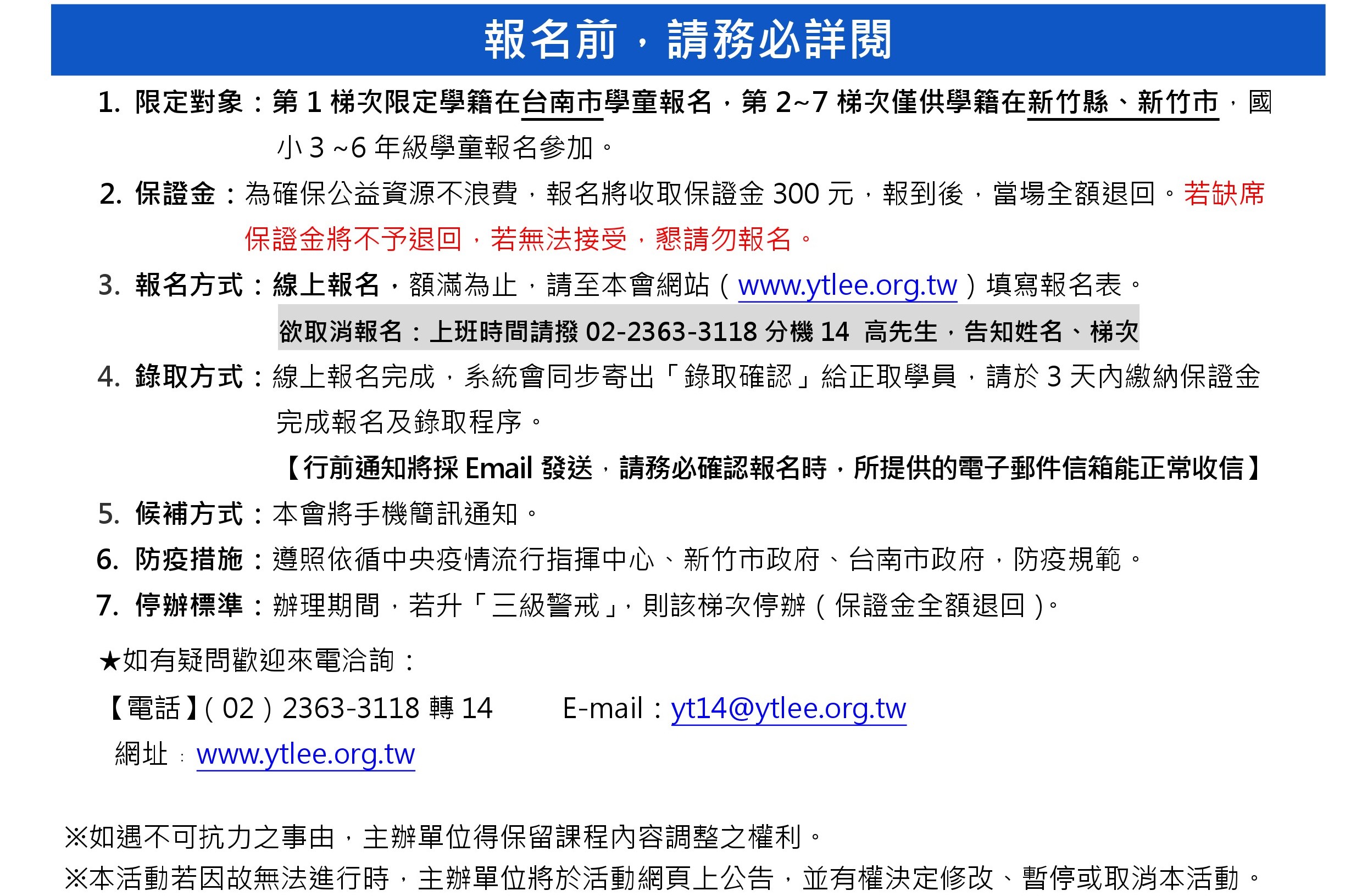第1梯 活動僅限學籍在台南市-國小三~六年級學生報名。