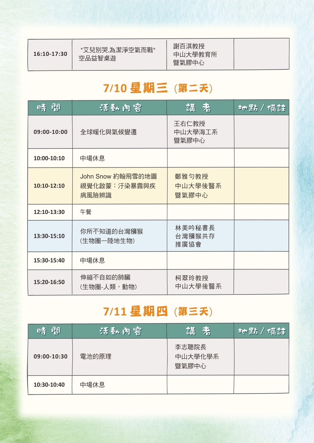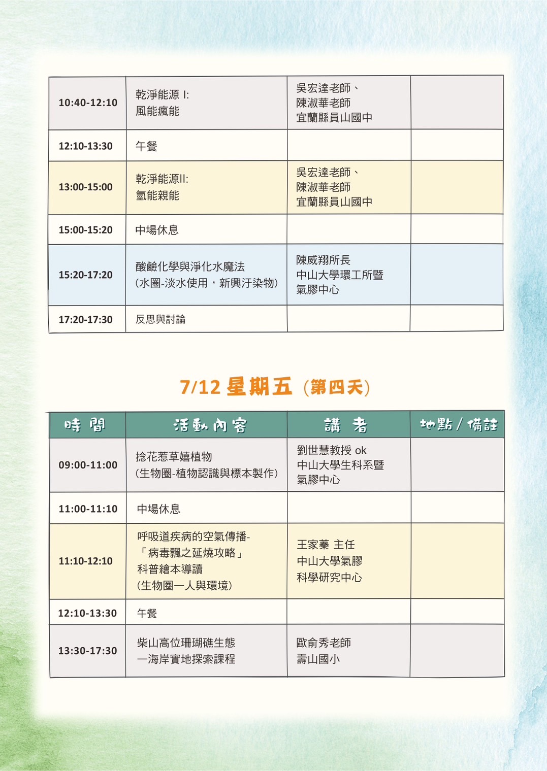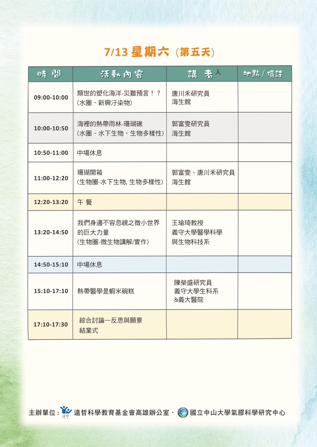 活動日期 : 113年7月9日(星期二)至7月13日(星期六)(五天,不留宿)