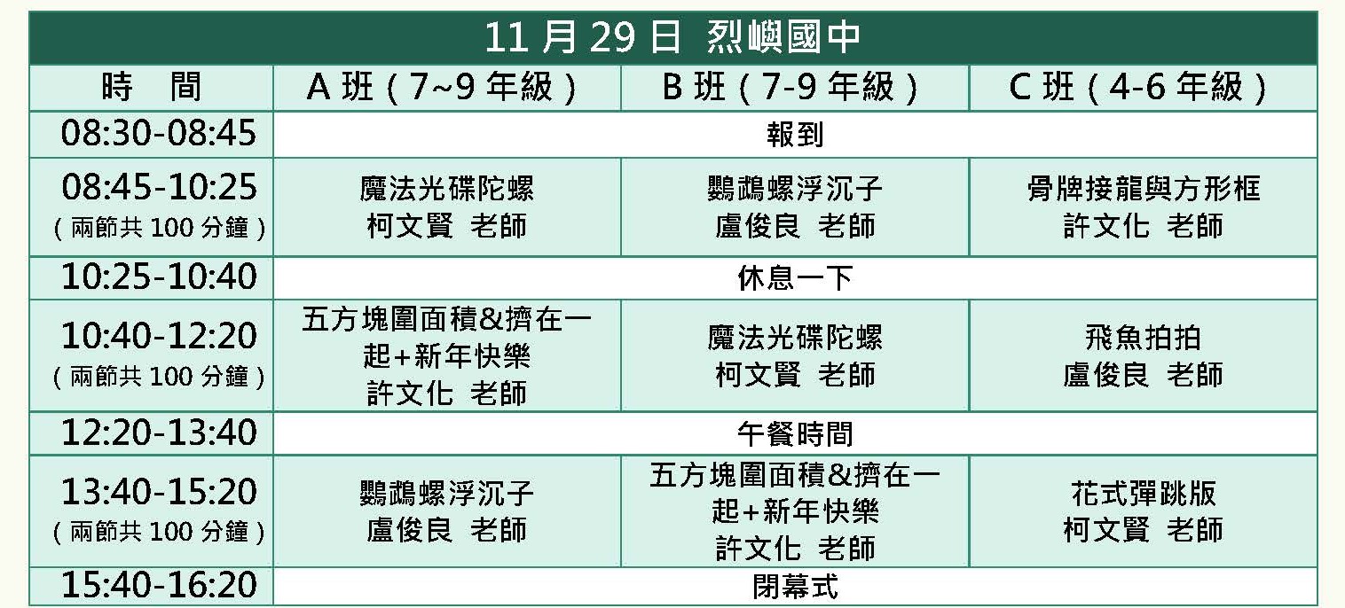 活動地點:金門縣立烈嶼國民中學(894金門縣烈嶼鄉金門縣烈嶼鄉后井38號)