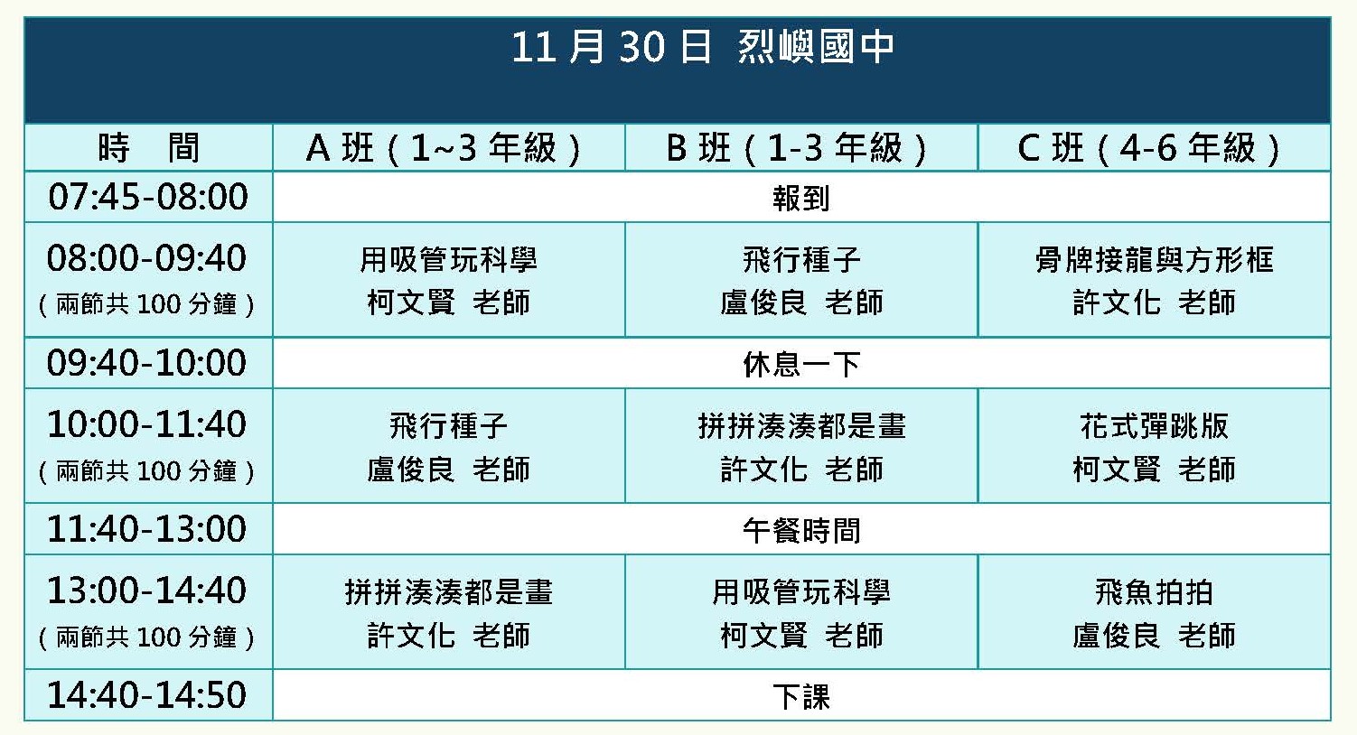 活動時間:11月30日(日)07:45至14:50(含報到時間)