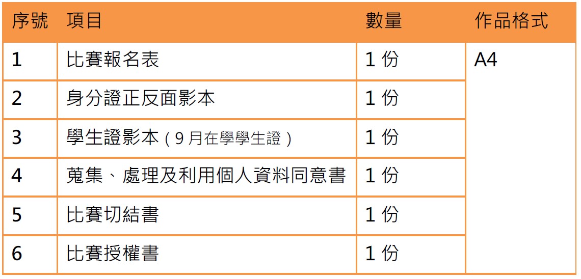 所有參加決賽未得獎隊伍,每人佳作獎狀乙份。