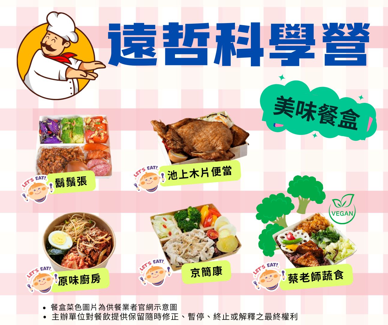 中午午餐:餐餐不同,每日皆有多家餐飲業者供餐